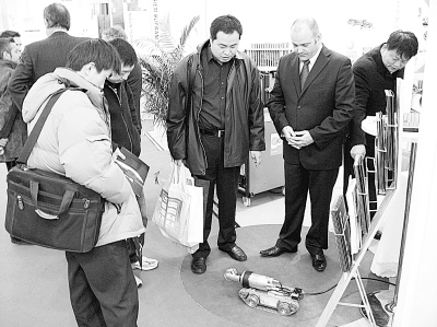 “當(dāng)然”,他示意展臺(tái)上電腦正在演示的視頻畫面。這是一個(gè)核電站的場景,兩位穿著厚厚的白色防護(hù)服的工作人員,將這個(gè)“小家伙”慢慢通過橫阱放入存有高放物質(zhì)貯罐的屏蔽熱室內(nèi)。只見它大搖大擺地在里面四處查探。在監(jiān)控室,工作人員通過它拖著的一根百米多長柔軟的電線對(duì)其觀察和遙控。