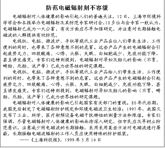 主題詞:電磁輻射、危害、情況、